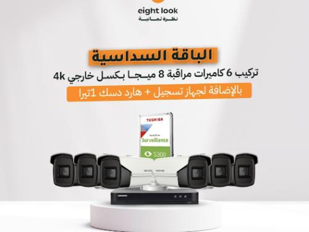 - عدد 6 كاميرا 8 ميجا بكسل خارجي 30 متر 4K