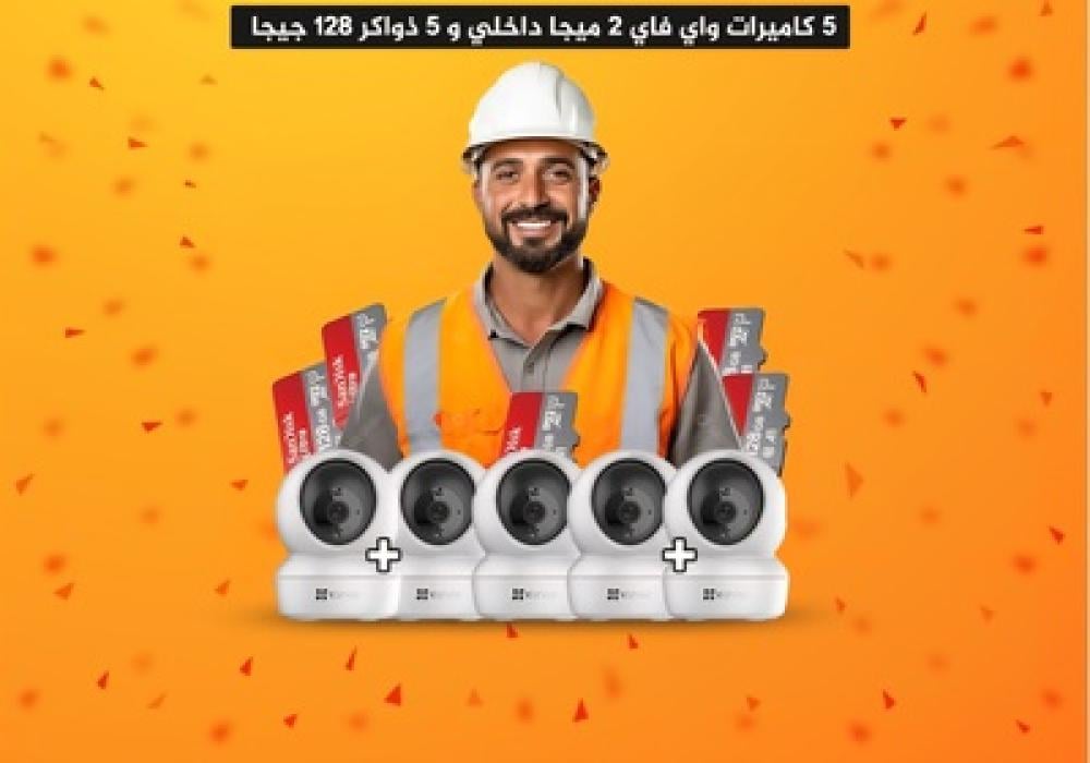احصل على حماية شاملة مع باقة 5 كاميرات EZVIZ بدقة 2 ميجا بكسل، مزودة بذواكر 128 جيجا لكل كاميرا لتخزين التسجيلات بأمان وبدون الحاجة إلى جهاز تسجيل خارجي.