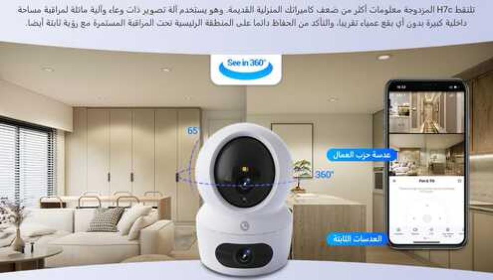 تمتع بتغطية داخلية شاملة مع كاميرا EZVIZ H7c الذكية، المصممة بعدستين لتوفير رؤية أوسع، بجودة تصوير 4MP، واتصال لاسلكي مرن وتحكم فوري من تطبيق EZVIZ.